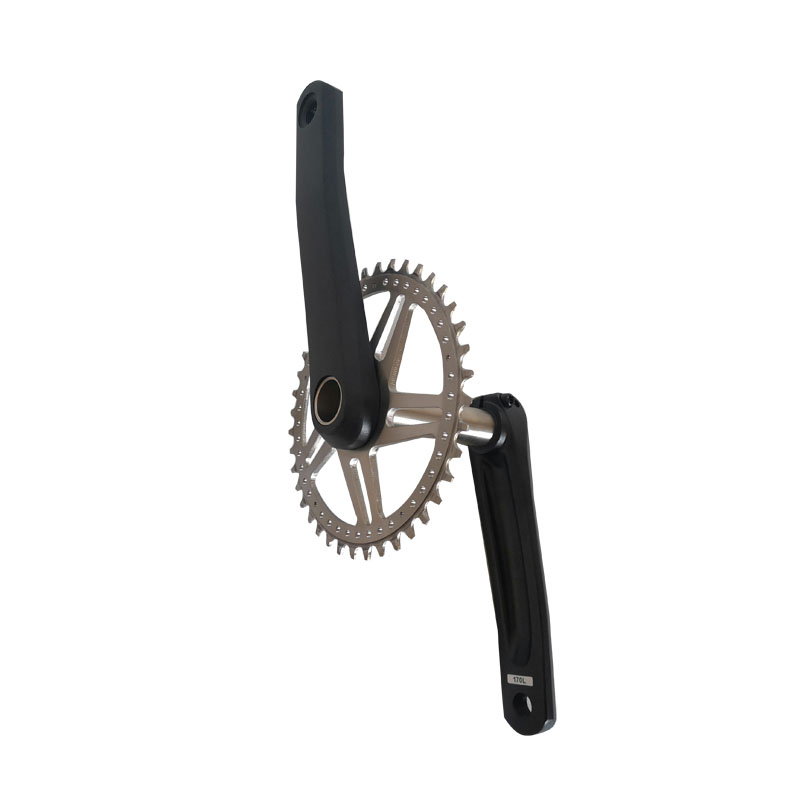 and the chain ring is +/- teetch, oval shaped, 40T, in titanium alloy
